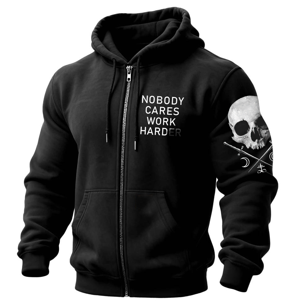 Nobody Cares Work Harder Printed Zippered Hooded Fleece Cardigan